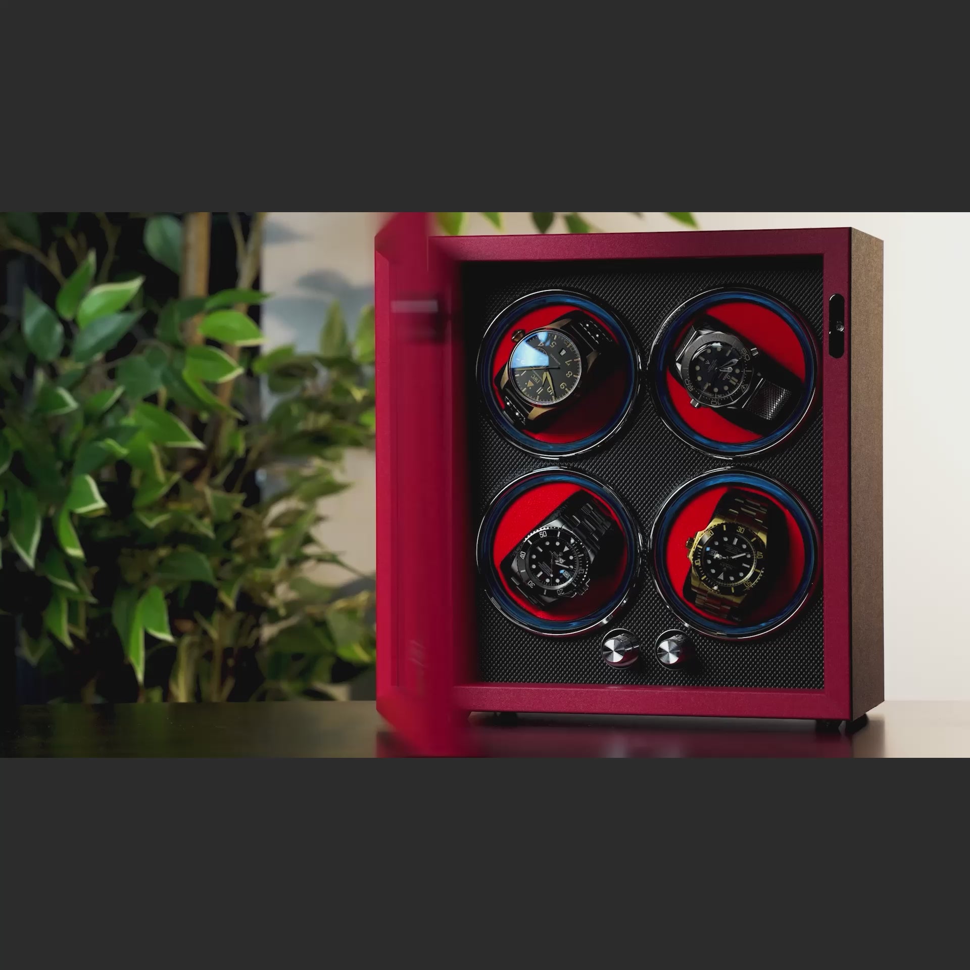 Elevate your home decor with our new iteration of the Guardian collection, now available in orange, green and blue. With a high-quality motor offering various rotation modes, securely display your watch collection in style. Add a touch of style and sophistication to your space with this colourful accessory.